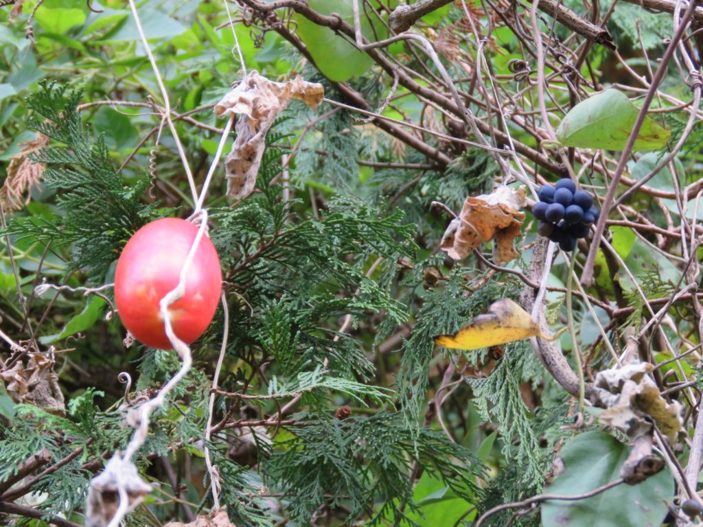 巴川沿いに大繁茂してしまったアレチウリ(特定外来生物)の実