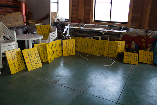 - 漁協組合員の協力を得て看板を設置する自然環境部会員