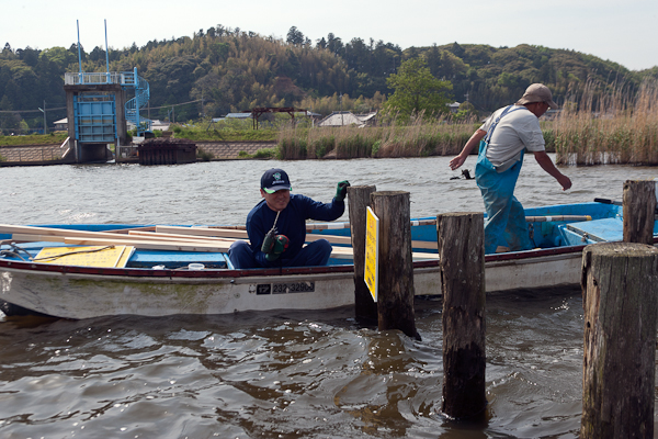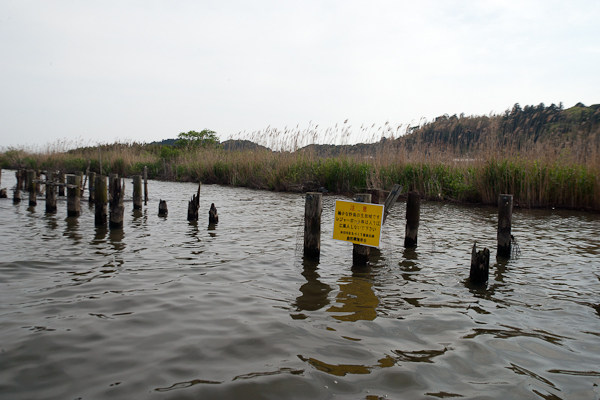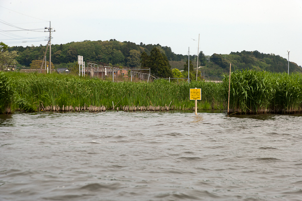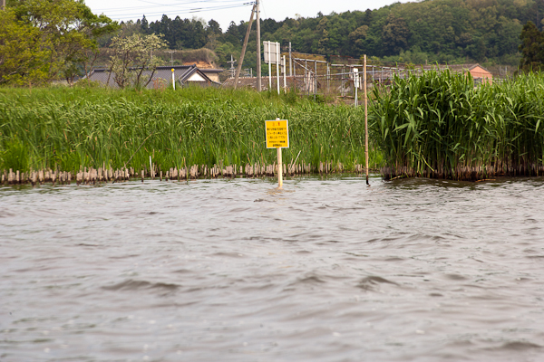 自然環境部会では、5月3日(土)に地元漁協の協力を得てカンムリカイツブリ保護の看板を北浦最北部に設置しました。この看板は、事前に同部会のメンバーが手作りしたもので、大型連休に間に合わせて重要なポイントと思われる所に設置したものです。北浦最北部のカンムリカイツブリは、昨年の6月4日まで西側の幾つかのポイントで普通に観察することが出来ました。しかし、6月5日に忽然と姿を消して以降、西側ポイントから姿を消してしまいました。原因は、バス釣り用のレジャーボート等が生息地に入ってしまった事でした。現在も西側ポイントには戻っていません。北浦最北部を追い出されるかたちで、二重作付近に移動したものや、更に南下して放浪している個体もあるようです。