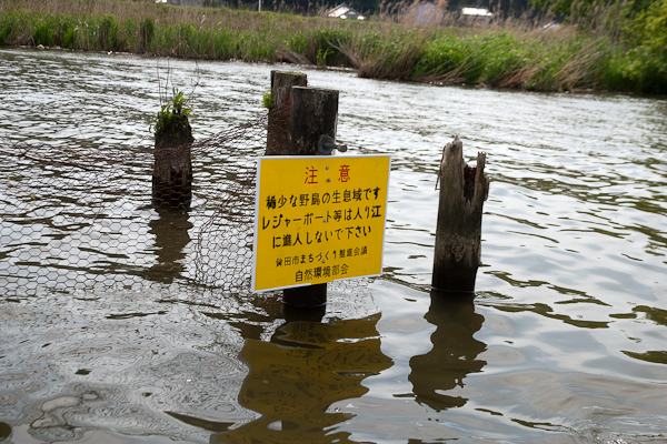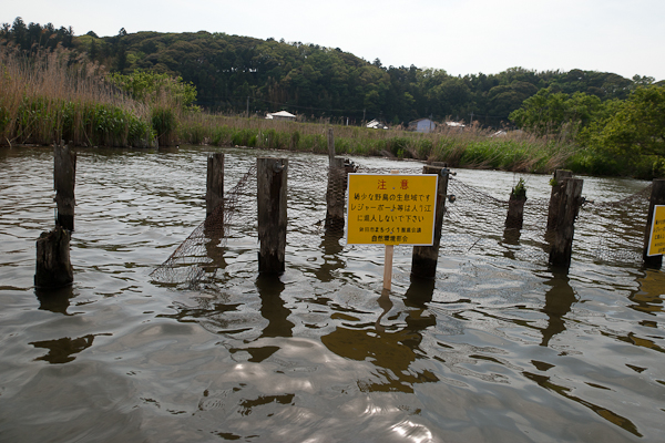 - カンムリカイツブリの生息地保護のため設置した看板