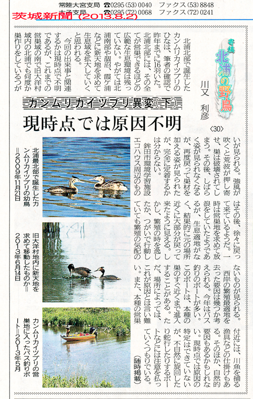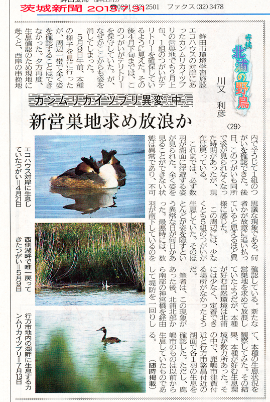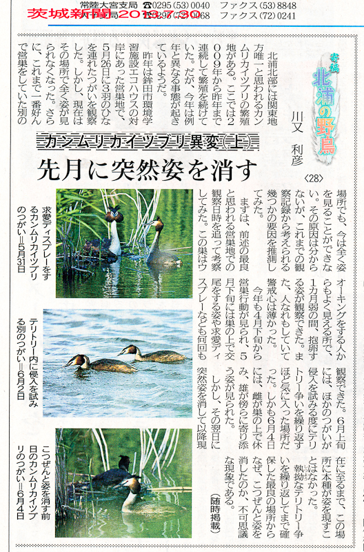 - カンムリカイツブリの異常行動を掲載した新聞の寄稿文